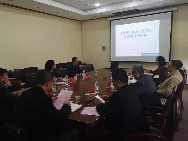 2020年1月6日,《应用技术学报》编辑部召开影响力提升及价值实现研讨会,编委会副主任委员、副校长毛祥东教授,上海市委宣传部传媒监管处处长赵靖,上海市教育学会秘书长、上海市教委教育督导专员苏忱教授、,上海市期刊协会会长王兴康编审以及上海市科技期刊学会、中国高校科技期刊研究、上海市高校科技期刊学会以及同济大学学报编辑部、上海大学期刊社的领导及专家出席本次研讨会。会议由学报执行主编朱建育编审主持。