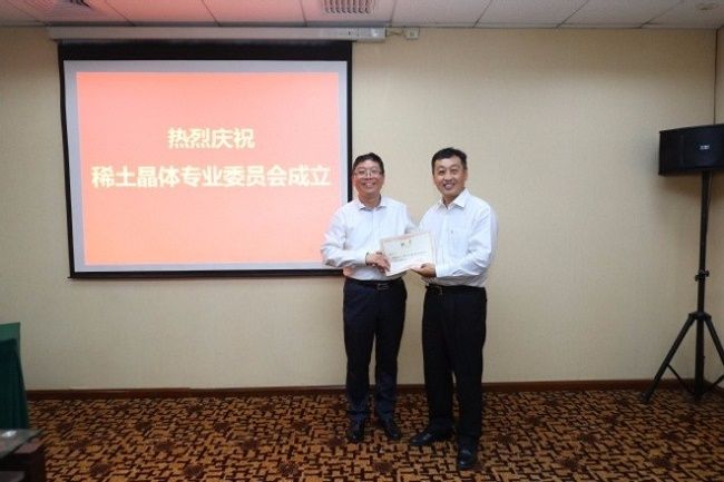 5月15日至18日,第九届国际稀土开发与应用研讨会暨2019中国稀土学会学术年会在北京召开,中国稀土学会稀土晶体专业委员会宣布成立,中科院长春应用化学研究所副所长、稀土资源国家重点实验室主任、《应用技术学报》编委薛冬峰研究员当选稀土晶体专业委员会主任,我校材料学院院长、《应用技术学报》主编徐家跃教授等人当选副主任,中国稀土学会理事长李春龙教授为他们颁发聘书并致辞。